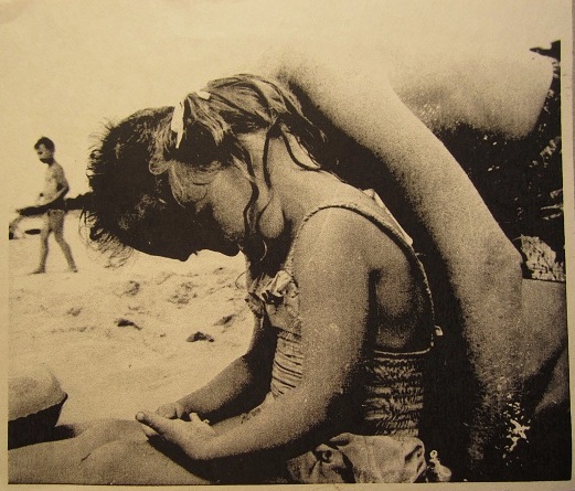 Immediately, from out of nowhere, he plopped an old photo into my mind like a slide into a projector, a 65 year old black and white picture Mom had taken. It’s one of my favorites from childhood and shows a 3-year-old-me sitting on the beach, upset about something. My daddy is leaning over my shoulder trying to do several things: