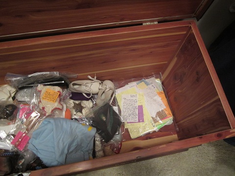 I loved the idea of a Hope Chest, though I didn’t have one. But years after I was married, despite having closets loaded with everything I needed, I asked Nate if I could have a Hope Chest for my 40th birthday. We chose it together, and I filled it with sentimental items I wanted to keep: baby shoes, my Girl Scout sash, the mold of a child’s hand, my first piece of little-girl jewelry, a child’s art project, an engraved drinking cup, and about 50 other things.
