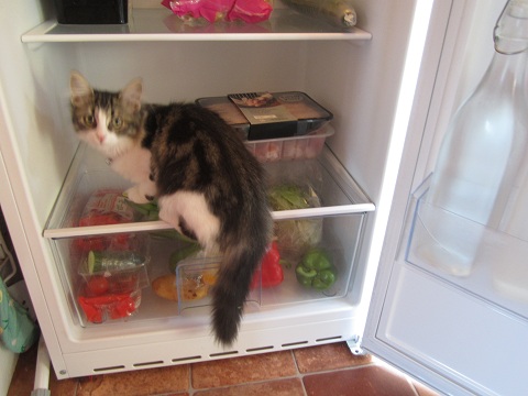 As for Fizz, it’s a good thing God blessed her with a “new” fur coat, because in the fridge she’s going to need it.