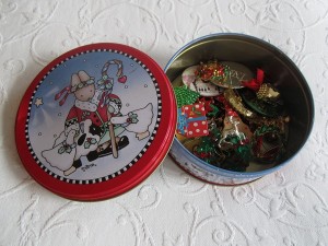When it comes time to put away our family’s Christmas things, I always leave two items for LIFO (last-in, first-out): my giant canister of holiday cd’s, and the tin of holiday necklaces, earrings, and broaches. After December 1st, it’s only Christmas music at our house, and it’s holiday “jewelry” every day.