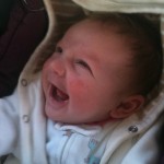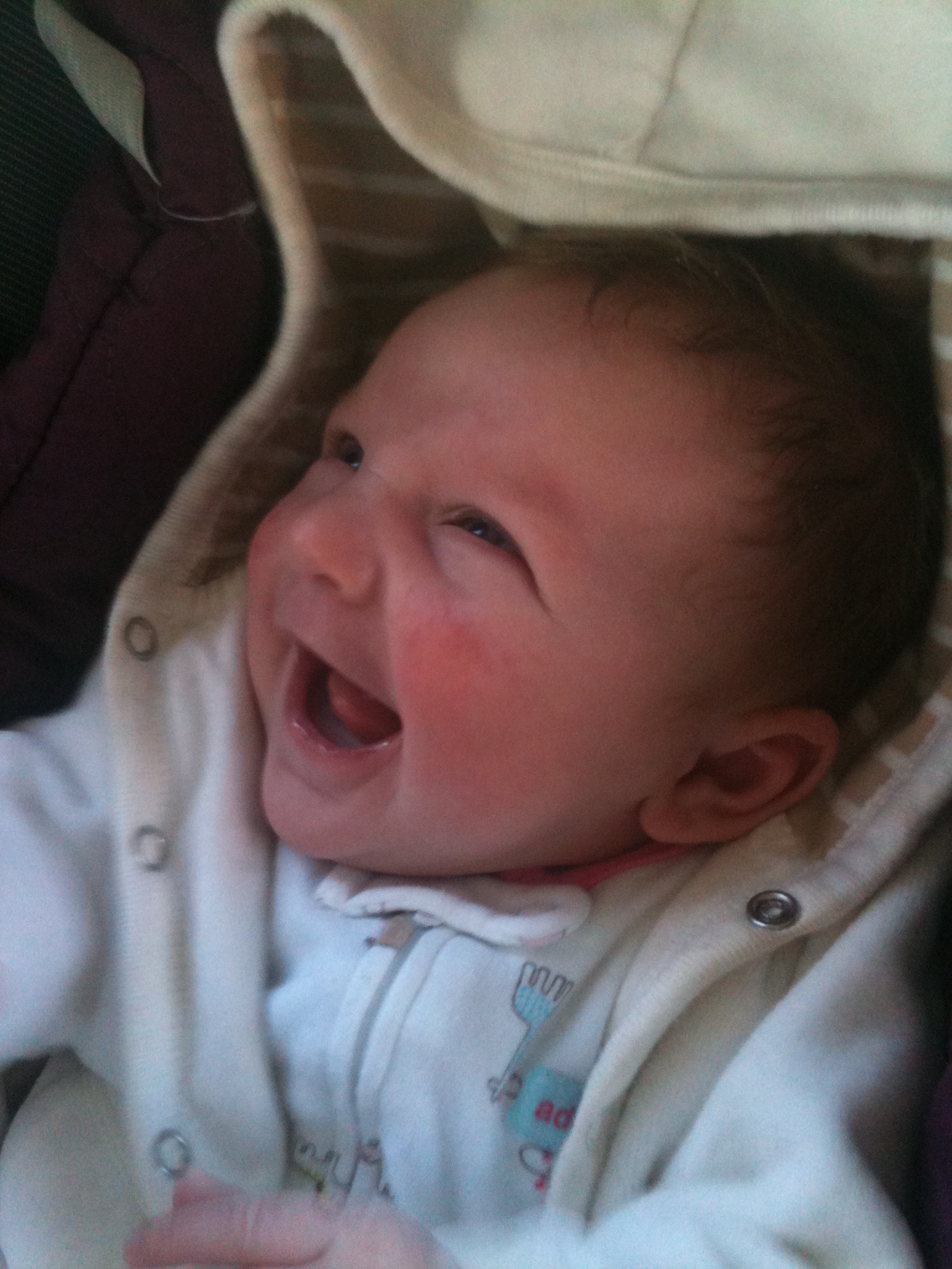 Little Emerald, at 8 weeks, knows nothing of speech. She hasn’t even begun cooing, though she’s hinted it’s just around the corner. Nine month old Autumn, however, said her first word yesterday (“mama”).