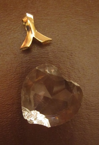 This morning it was a double-whammy. The heart pendant had been my Mom’s, and the gold chain had been Aunt Joyce’s. When Birgitta, Emerald, and I arrived at church, I hadn’t noticed that the necklace had slipped off. Even after today’s communion service, while brushing bread crumbs off my sweater, the necklace hadn’t crossed my mind. But when we arrived back at the car, the gold chain was hanging out of the car door, its crystal heart missing, and I remembered.
