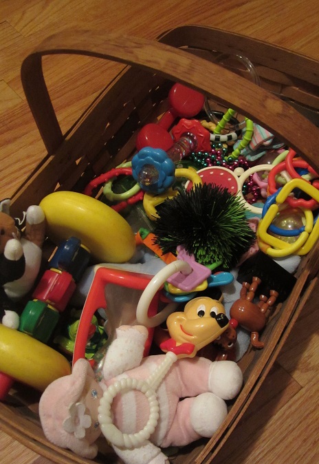 ….we headed for the door, but not before I decided to pack a few toys. Kneeling down with Emerald still in my arms, we chose her favorites from the basket, stuffing them into our now-plump, heavy bag. It had taken more time to prepare than we’d anticipated, so we swapped the stroller for the car and were, at long last, good-to-go.