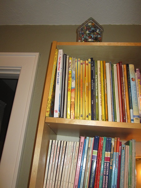 Grabbing Emerald to soothe her panic, I figured her reach had grown longer than I’d estimated, and she’d pulled the heavy jar off the shelf where it had been doubling as a bookend.