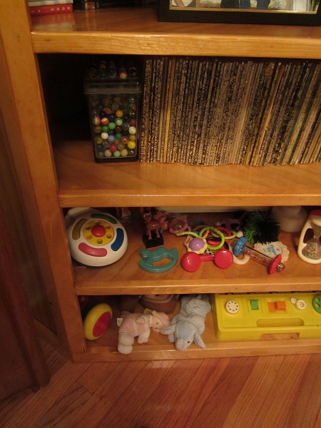 Today I’m thankful for flying marbles. It let me know Emerald can reach higher, pull harder, and hurt herself more seriously than I thought she could. And now I know. Our marbles have been relocated to the very top shelf.