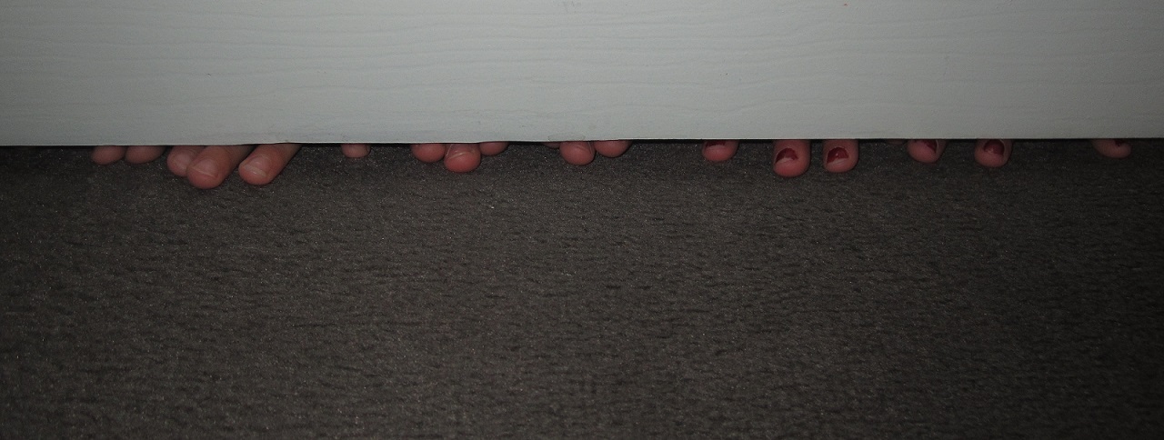 One morning while sitting on the bed praying, I heard whispers in the hall. “She’s in there!” Suddenly 10 little fingertips appeared under my door trying to get as close to me as possible without violating the parental edict. Soon a second and third set of fingertips appeared, “trying to get to me.” I felt very loved.