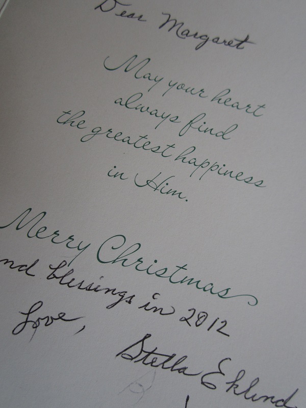 As I opened today’s card, the signature made me smile. It was from one of Mom’s good friends, Stella Eklund, and in the time since Stella had sent her card, she’d left Chicago and gone to heaven. I smiled because I knew how eagerly she had looked forward to that relocation day.