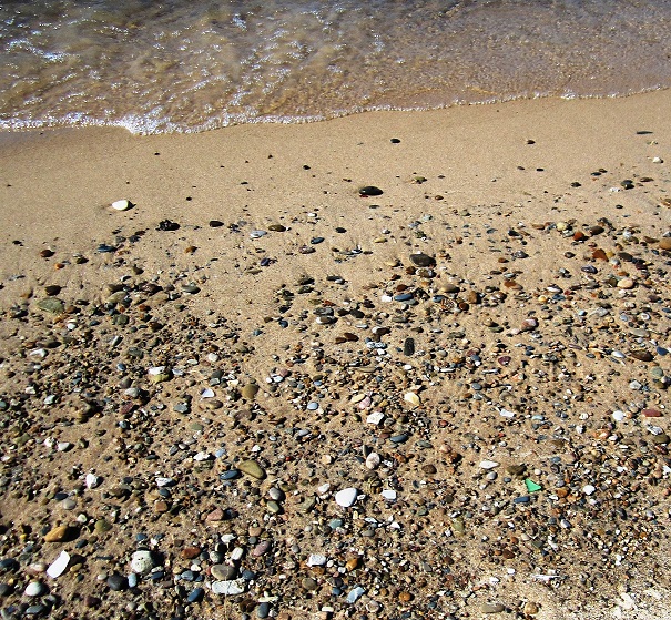 It’s interesting that beach glass is man-made and stones are God-made. Both are frequently taken home as treasures, but they’re very different from one another. The bits of etched glass are glamorous, rare, the “celebrities” of beach finds. Attractive stones are more common, easier to find, and have no special sparkle.