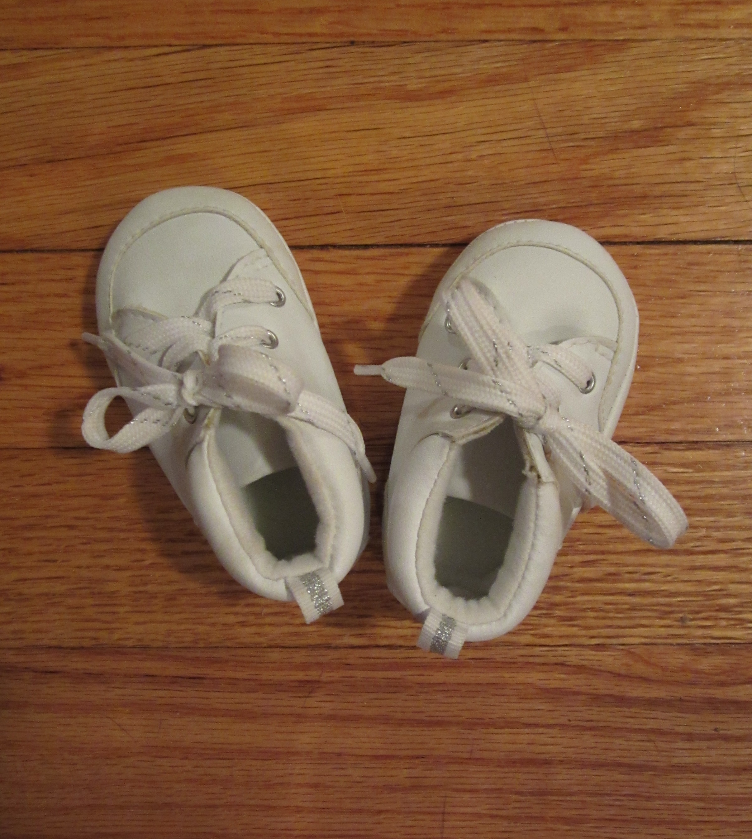 The next time we used her lace-up high-whites, but she balled up her toes so stiffly we couldn’t get them on. I have no idea what we’re going to do with our barefoot baby as seasonal temperatures dip further.