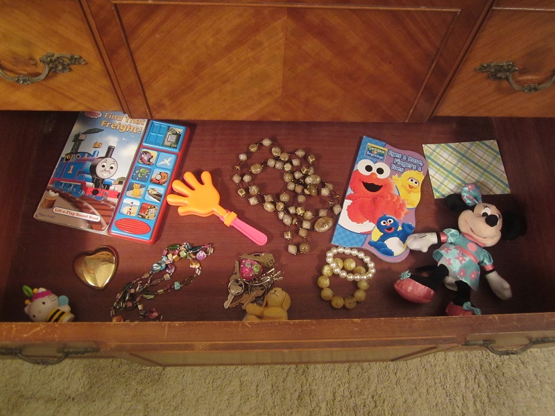 Maybe it’s oversimplification, but I think God hopes for something similar in his dealings with us. Though he showers daily blessings on all of us, they’re not the same for everyone. When I first set up Emerald’s drawer, I put some thought into which items I would include and chose only what I knew she’d love: books, stuffed animals, keys, costume jewelry.