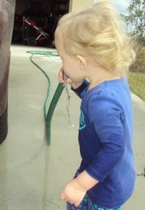 Whoever said little kids have short attention spans hasn’t met Skylar. She focused on our work for over two hours at only 19 months old. Chattering the entire time, she hadn’t had enough even after washing the car, her red wagon, the basketballs, her own clothes and her beach chair. Jack did his level best to stay out of range, although she frequently swung the hose and slopped wet rags in his direction.