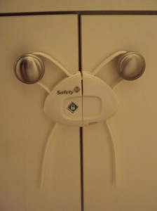 I laughed and laughed! And now that I take care of our Hunter 2-3 days a week I relate to needing a vacation when you get home! I’m often in bed at 8:30 after he is picked up. Our little guy can open those spiffy new cabinet locks too–the ingenuity it takes to be a parent these days–not to mention some handyman abilities! At our house we use rubber-bands!! Thankfully door knobs are still too high , but the way Hunter loves all things shiny and mechanical we may be in trouble soon.