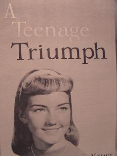 That school assignment eventually became the centerpiece of a pamphlet entitled “Teenage Triumph” and was printed in 14 languages, distributed on every continent. Countless young people have come to Christ because of her testimony during the 51 years since her death. Eventually her story was included in a book entitled MORE THAN CONQUERORS along with celebrities like Chuck Colson, Corrie Ten Boom, C. S. Lewis and Billy Graham.