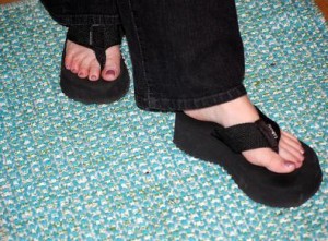 As I sat this afternoon with my propped pillow and ice bag, I was furious with myself. The high sandals were a cast-off from one of the girls, and I should have left them in the trash where I found them five years ago. Today I only wore them because they matched my skirt, so it was vanity that got me in trouble.