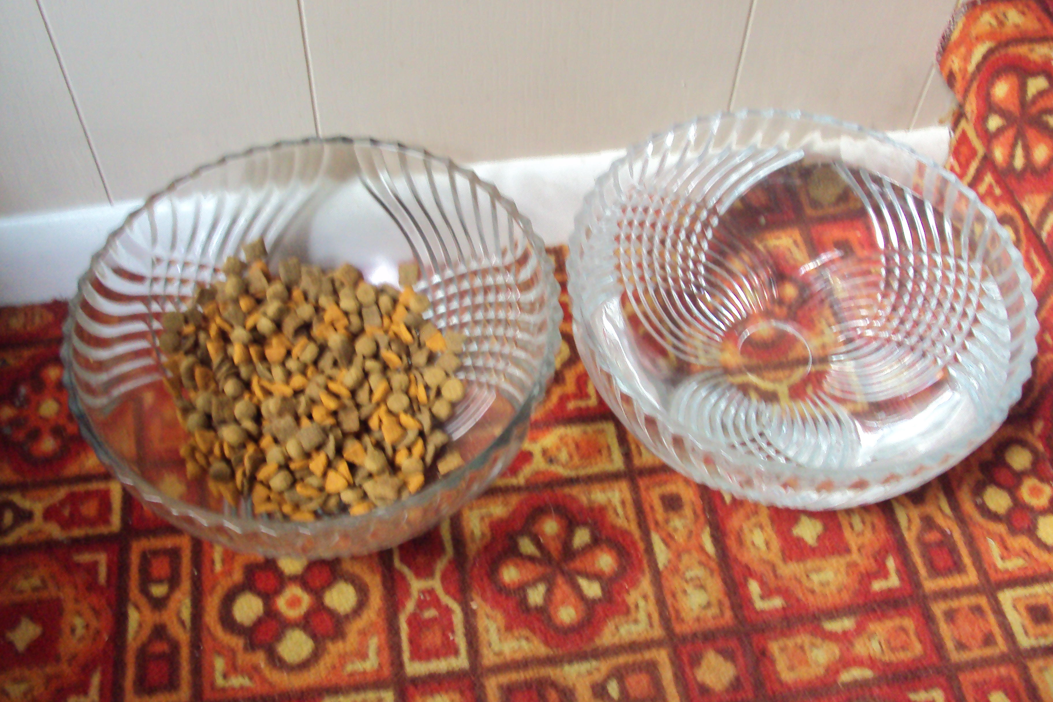 When we moved to the cottage with the four bowls, we were squeezing two houses worth of stuff into one and had a bowl-crisis for sure. I asked every visitor, “Want a pressed glass bowl?” For nearly a year there were no takers, but eventually one bowl went to a new home. Eventually Jack got two of the bowls, which left one for people-food-use.