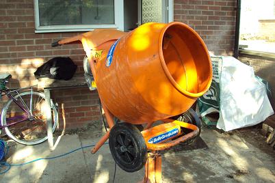 I’m trying to figure out what the guys are doing with the yard, and with the orange piece of equipment. Is that a cement mixer of some sort? Love all the photos….thanks for giving them to us, on a daily basis.