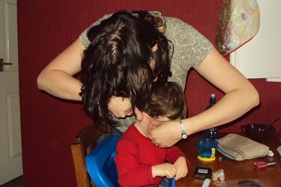 It is so hard to cut cute curly hair! He looks good though. It looked like he sat pretty still.