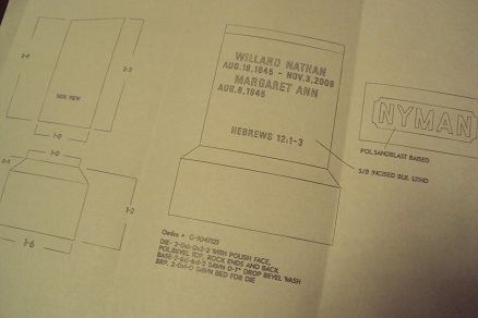 This week the cemetery envelope arrived in my mailbox. Knowing it contained a sketch of our stone, I waited to open it until I could put the visual into my head. Would it be difficult to look at it? Would it be a shock to see my own name there also? Would we be satisfied with our design?