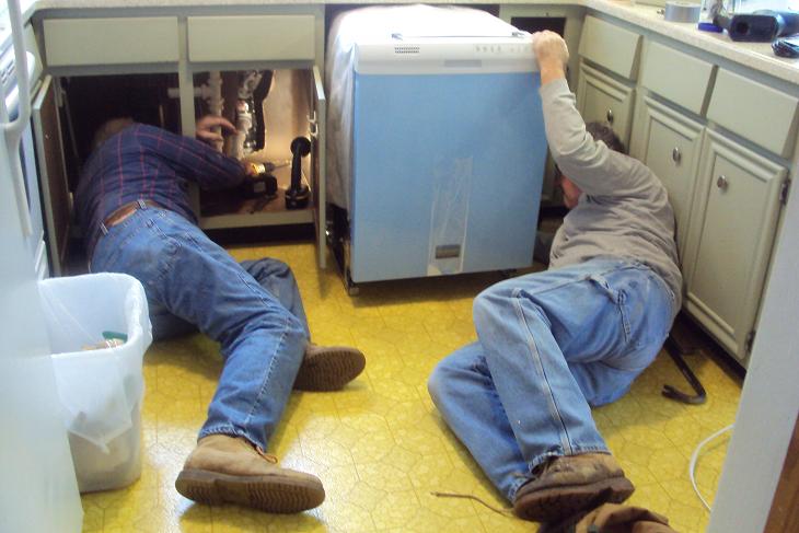 As they worked, I learned that installing a dishwasher requires creative plumbing and electrical skills, as well as a rib cage strong enough to lean on the sharp edge of an under-sink cabinet for a long, long time.