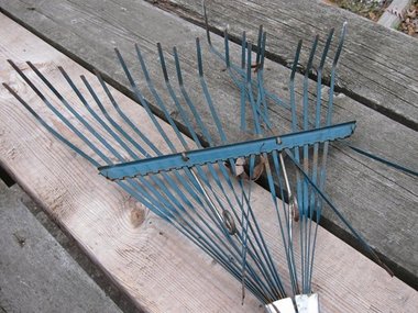 She made it clear she didn’t want our help, so we found a spot to sit, waiting to see what would happen. Suddenly she dropped her bags and said, “I forgot my rake.”