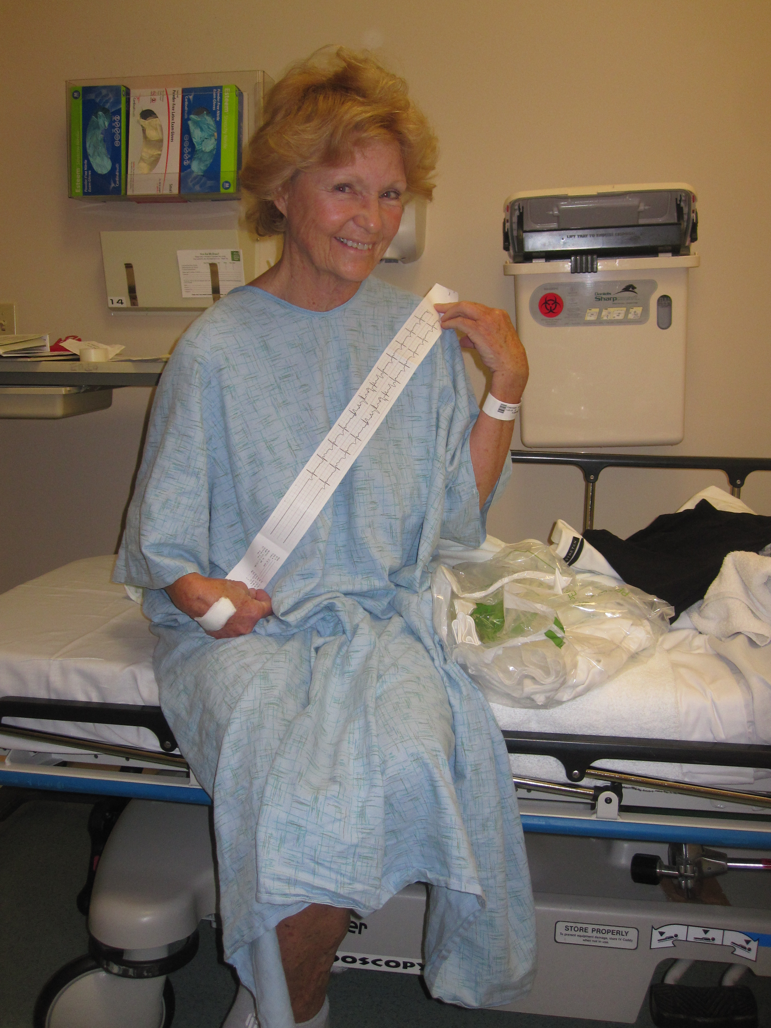 After checking blood pressure (98/65), temp (97.3) and pulse (71), I was wheeled to my colonoscopy destination. The doctor introduced himself and rattled off a description of the procedure, ending with, “Any questions?”