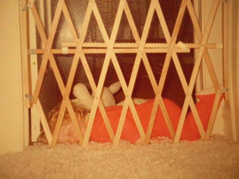 We paid a price for success, however. Rather than surrender quietly, Nelson used his room as a giant playpen, emptying drawers, pulling them out to use as ladders, removing sheets from the two beds, tearing pages out of books. When he tired of playing, he’d fall asleep at the door, often with one arm and one leg outside the gate.