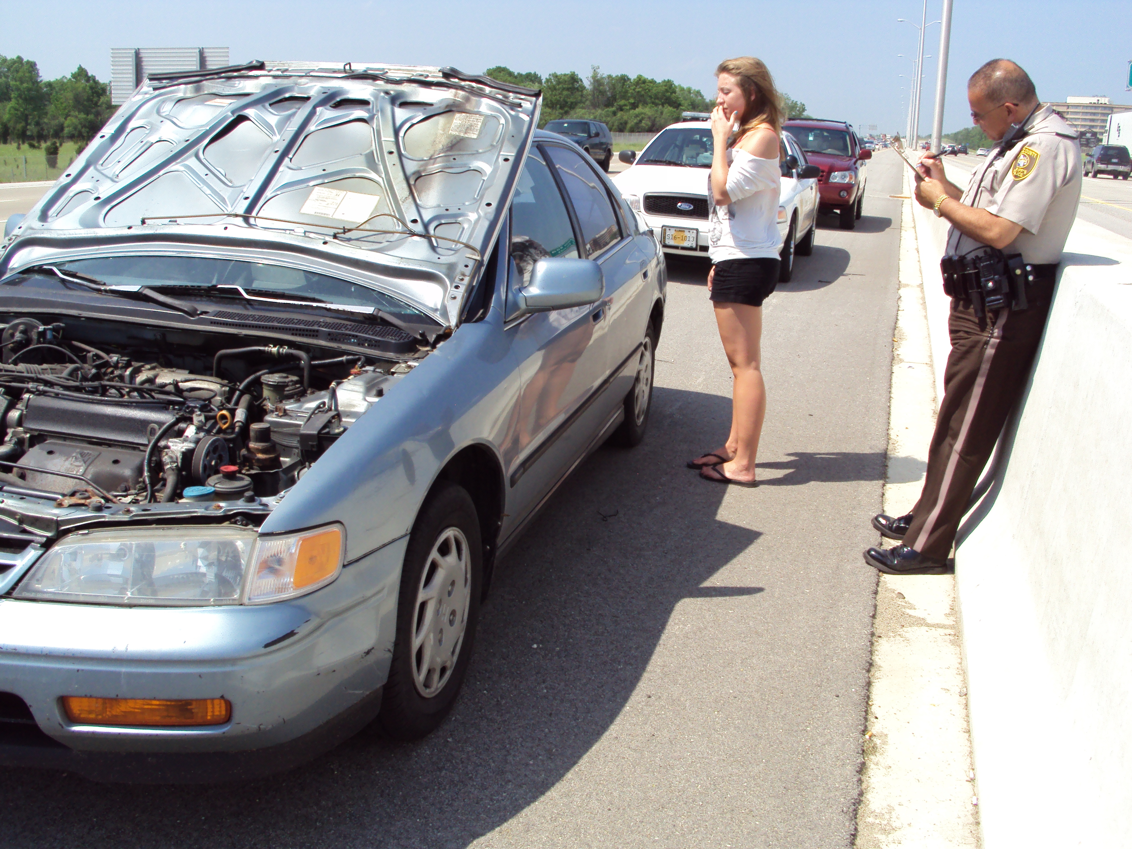 I can totally relate to the panic birgitta must have been going through very scary! About 8 yrs ago I was traveling s/b on 53 just south of Euclid Ave in the middle lane when suddenly a tarp blew off a landscaping truck and landed across both windshields of the semi truck I was driving. The hardest part was it wrapped its way around both mirrors and I was completely blinded from the traffic around me. This made for quite a challenge in pulling over and not killing anyone on my way over! Praise God we made it to our shoulder Gitta hopefully your travels were less adventurous. Good luck and God bless this school year for you Birgitta. Thank God for moms!
