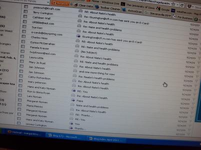 I don’t know what prompted me to do it, but tonight I clicked on my email file entitled “Nate”. The day after we received his fatal cancer diagnosis, I started saving messages in this then-new folder. One of the first entries is the long letter I sent to my closest friends letting them know our dreadful news.
