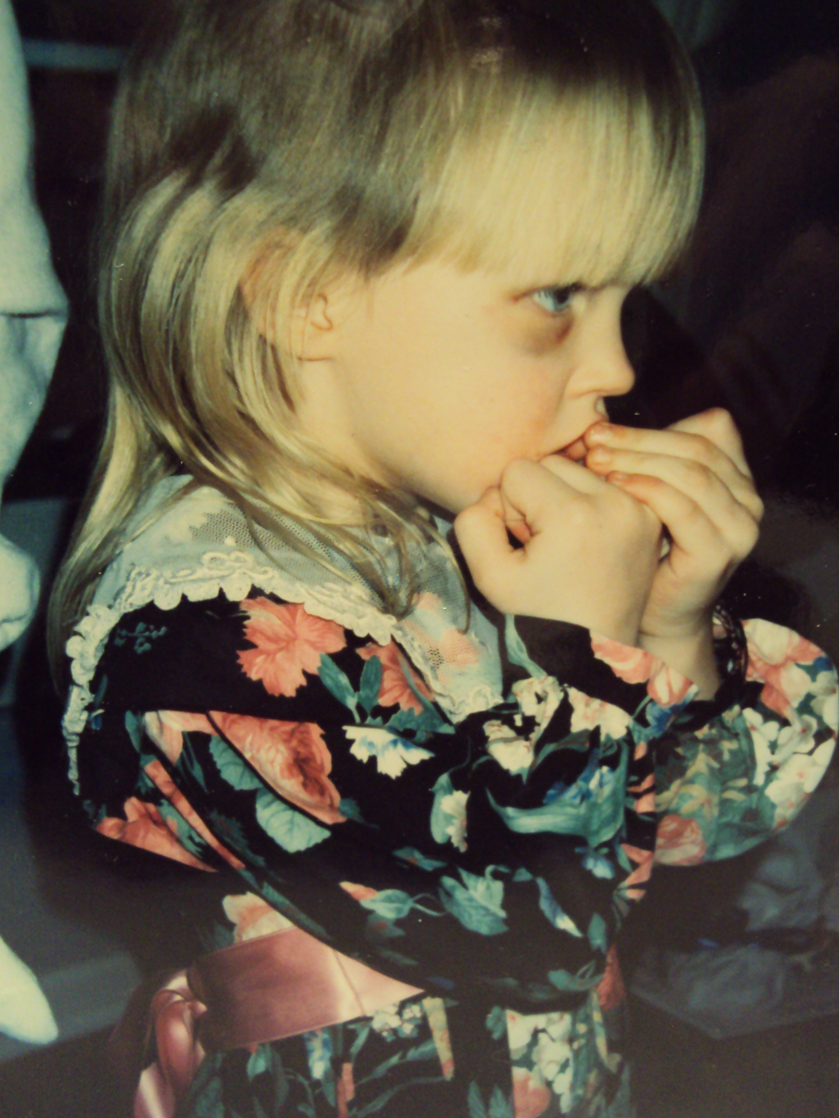 This photo of Louisa tells a shiner story of high impact with a coffee table, but that tale is insignificant compared to a second story told by the same picture.