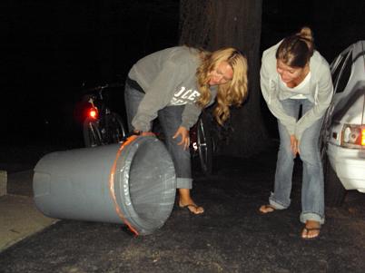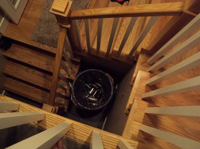 In slow, single file we snuck down the steps, Louisa in the lead, following my instructions to gently lift the whole garbage can and carry it outside. But when she moved it, the “big thing” jumped straight up, causing her to drop the can, scream and double-step up the stairs.