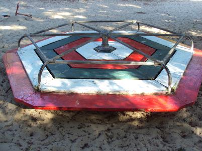 When Skylar and Micah were here (ages 3 and 18 months), we frequently walked to a nearby playground to ride a small merry-go-round. It had no ponies, brass poles or circus music, just boards to sit on and painted pipes to hold. Their daddy spun it again and again, and we all enjoyed their grins and giggles.