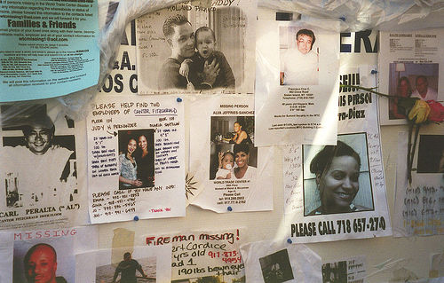 On this 10 year anniversary of the 9/11 attacks, while listening to a recitation of casualty names, I thought about the nearly 3000 people who had vanished that day. Hospitals were staffed and waiting, but very few patients ever arrived. For weeks family members believed their loved ones might still be found alive, so they posted pictures and desciptions throughout the city.