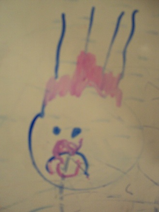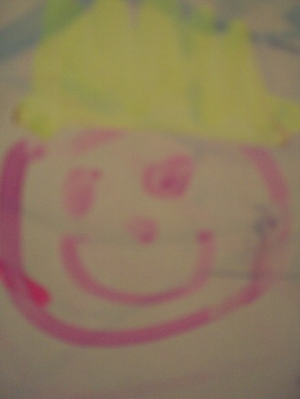 “Sure,” I said, reaching for the pail of special markers. “Why don’t you draw your family,” I said, heading back to my project. As Skylar drew, she sang original little ditties about mommy, daddy, Micah and herself. When she drew a self-portrait, she added stripes above her head with a pink splotch beneath them.