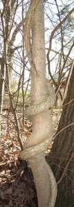 I probably won’t tamper with our neighborhood forest, but it’ll be interesting to see who prevails: the tree or the vine.