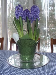 I don’t recognize Hyacinth Bucket, but the hyacinths are sure beautiful- nice touch, Mary! I planted a bunch of bulbs for the first time this past fall so I am hoping for a few fragrant porch sits this spring.