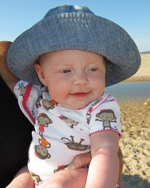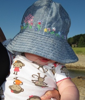 For the last 10 days we’ve had fun with 3 generations bunking at my house. Daily we trudged across red-hot beach sand to the cool waters of Lake Michigan toting armloads of fun-promising equipment. But along with all the entertainment was one item parents of beach-bound babies don’t want to forget: a sun hat.