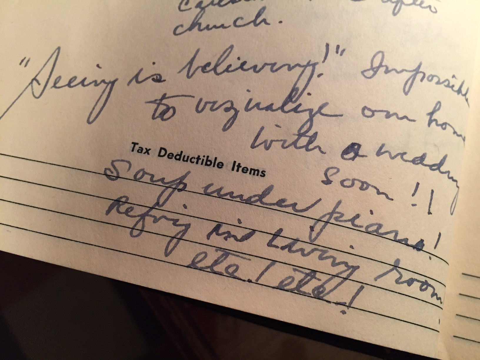 Apparently she and Aunt Joyce hadn’t been able to agree on how the table skirts should be attached in the room where the reception would be. And they wanted me to choose. So as the other dinner guests were calling it a day, the three of us walked back to the church – where some unexpected tears awaited.