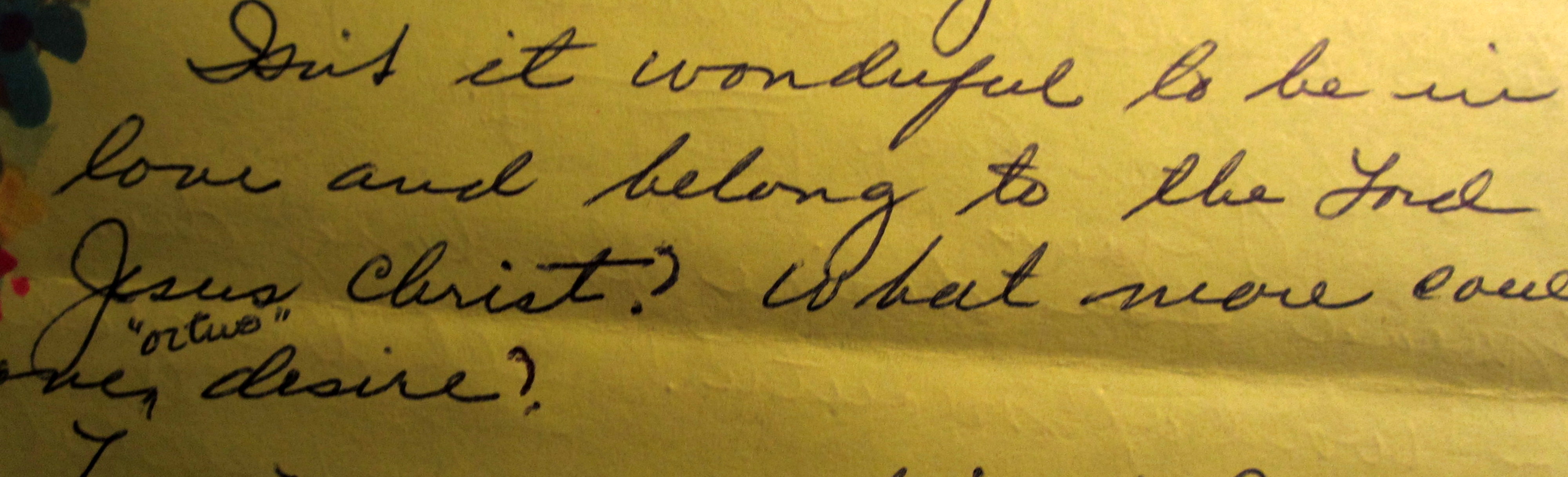 When we got back to Champaign, there was a letter waiting from Aunt Joyce. Her words put our weekend of receiving lots of “loot” into the proper perspective. Isn’t it wonderful to be in love and belong to the Lord Jesus Christ? What more could one (“or two”) desire?