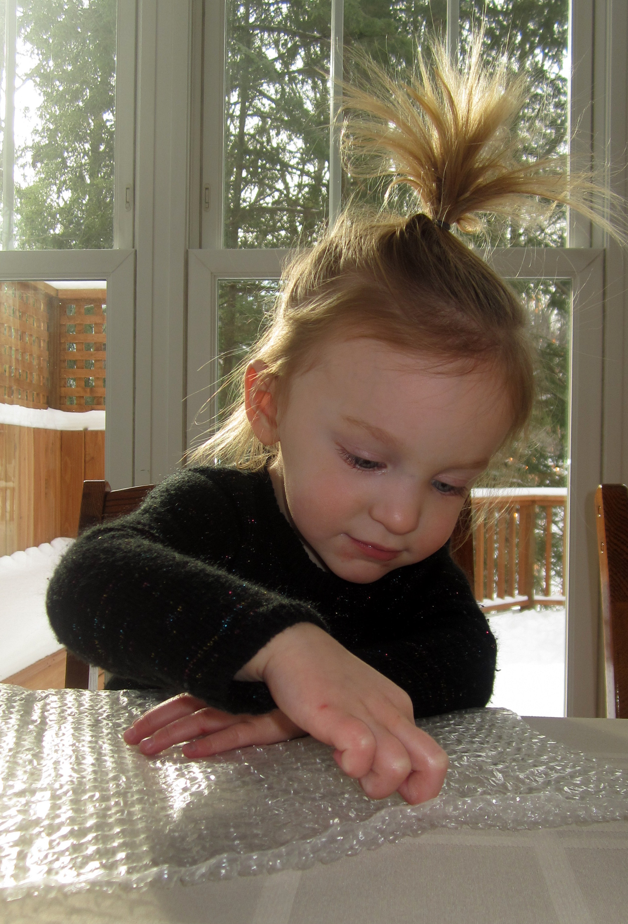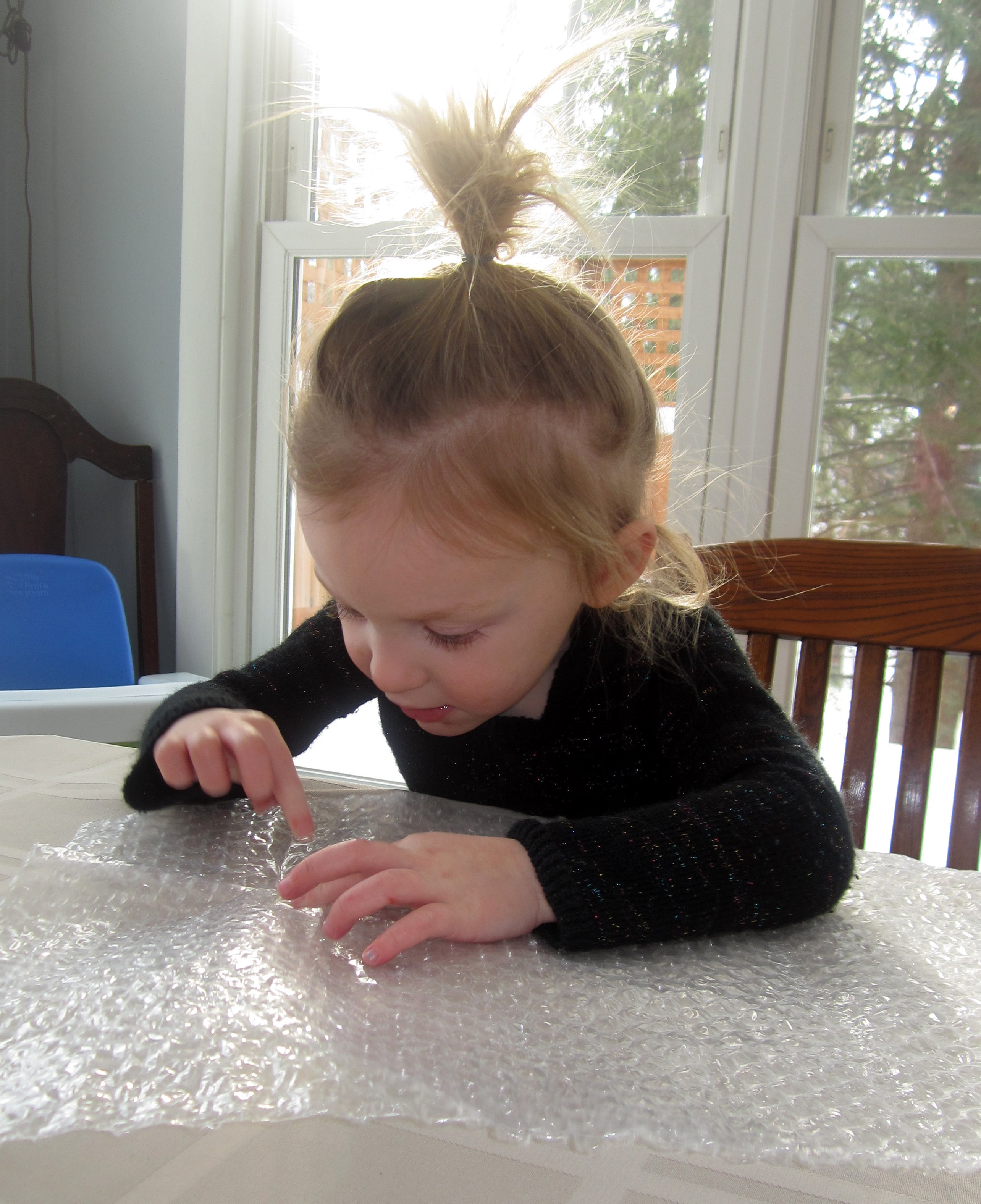 A week ago Emerald and I opened a package together that came in the mail. Inside was a generous supply of bubble wrap protecting the contents, and I wondered if she might be ready to pop the bubbles.