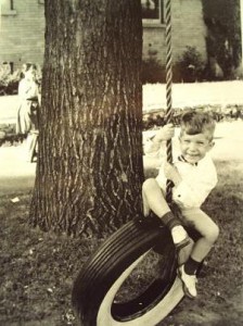 Our yard had a massive cottonwood, important because of the tire swing Dad hung from a branch 25 feet up. One good underdog push would keep the Goodyear whitewall sailing for a long while. He set a 6 foot ladder just far enough away so we could stand on the top step, leap onto the tire and fly birdlike in big swooping arcs.