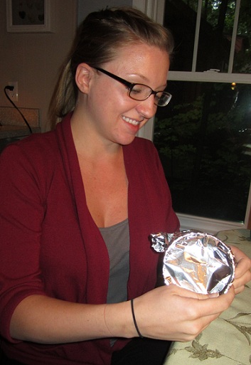 At home the girls poured over name books while I decorated cookies, and by dinnertime when Mary arrived, I’d managed to hold the secret without giving any clues. Finally the time came to give Birgitta her special cookie. I’d plucked one from the bunch and wrapped it in tin foil for this important moment. Handing it to her you’d think we were about to announce the winner of a Nobel Prize.