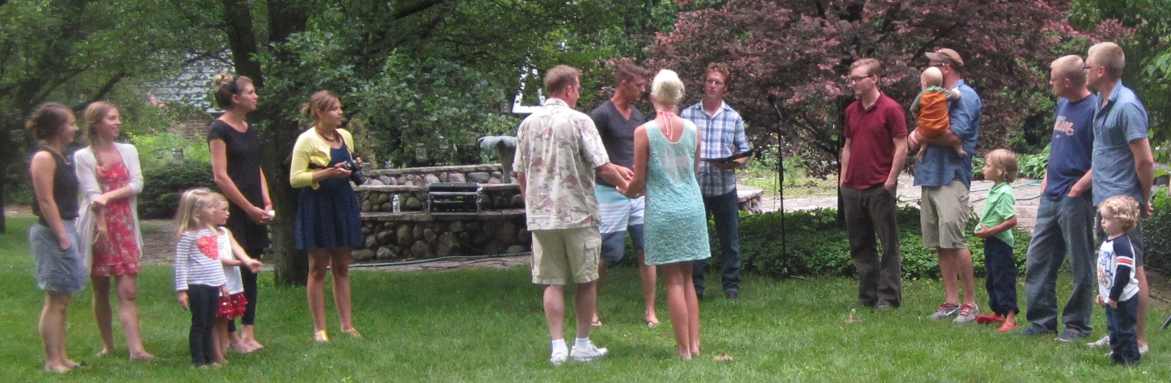 After filling up on pizza, everyone received instructions and took their places. The four young children did exactly as directed, and the “preacher,” our Nelson, reviewed the order of service with bride and groom. The sound man tried his equipment, and Birgitta practiced the song she would sing.