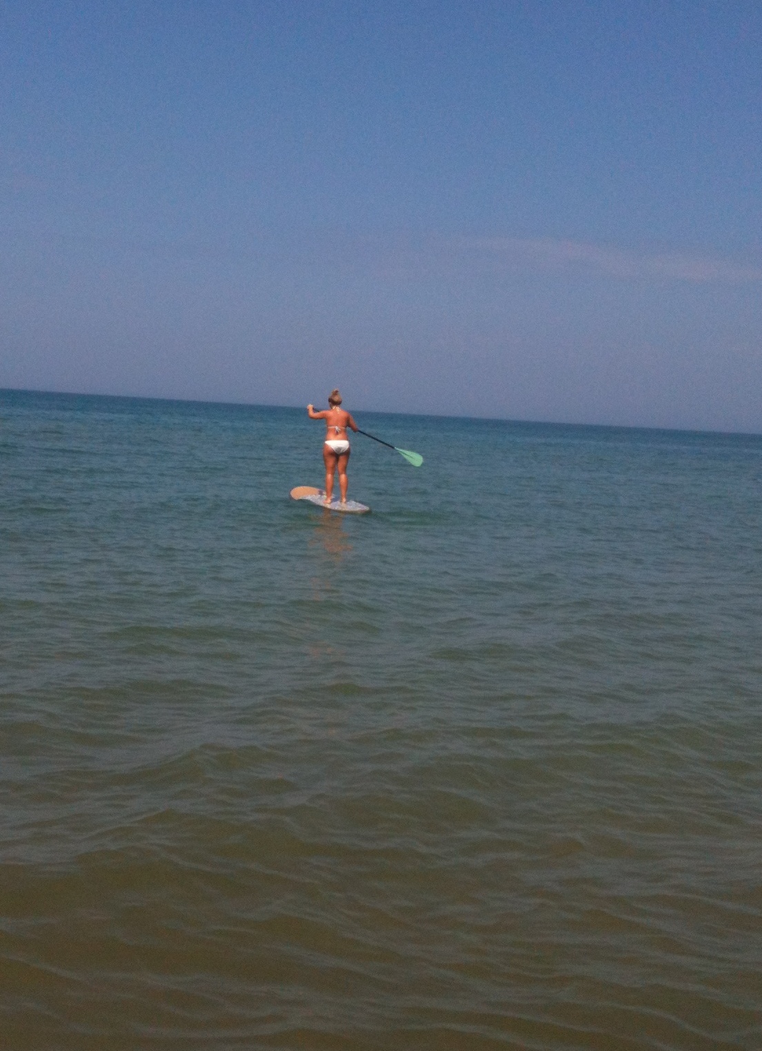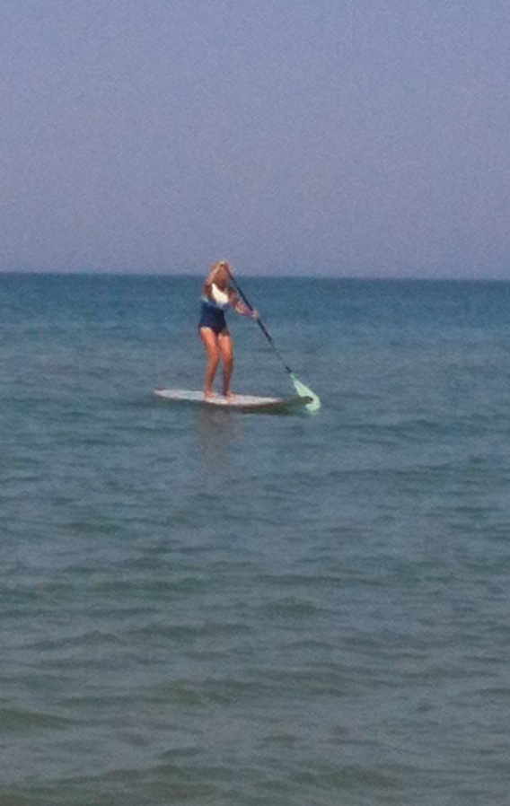 My son-in-law Adam brought his paddle board from Florida when his family visited this summer, and his command of the sport was impressive. He had a head start, though, having grown up on short and long skateboards, and mountain bikes. Now he’s passing along his skills to his children, who will probably grow into non-wobbly paddlers in short order.