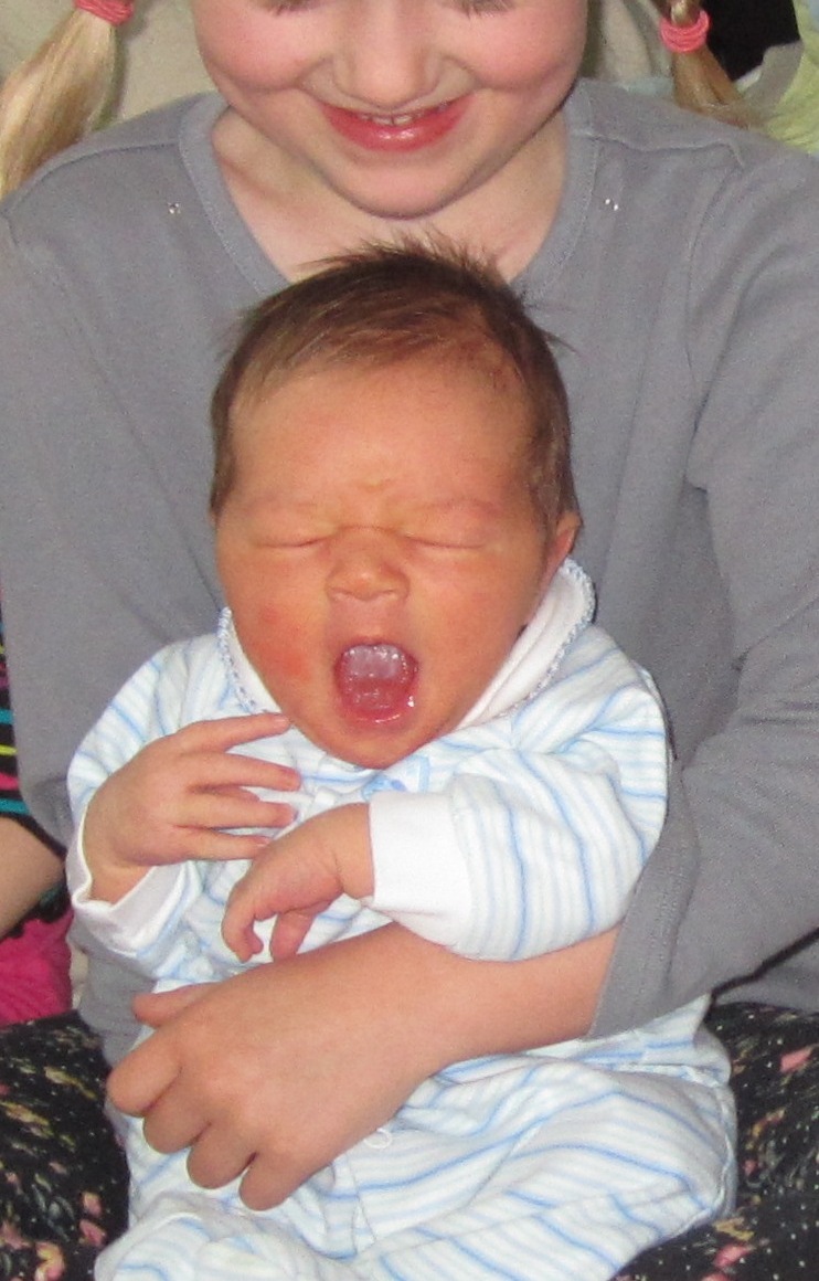 Baby Isaac celebrates his one week birthday tomorrow, and like all babies, he has his moments of wailing. Diaper changes are his least favorite activity, during which he voices his opinion at full volume. When that happens, even grandmas are distressed by the crying.