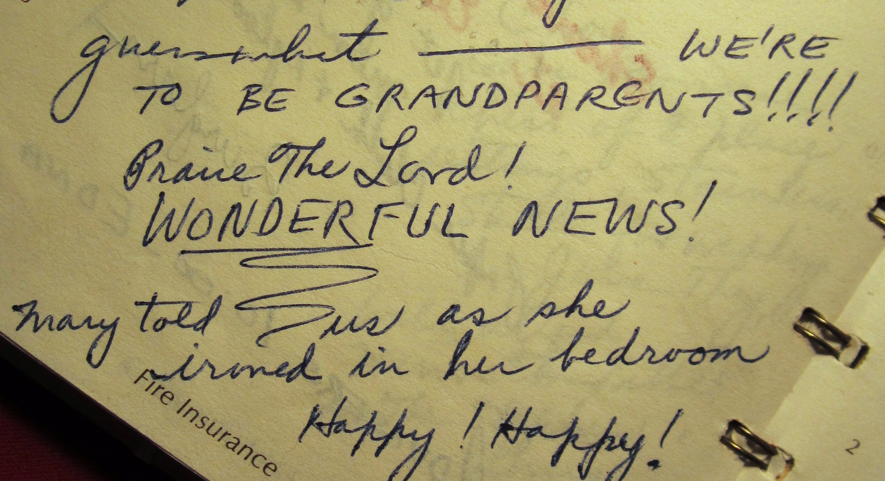 Guess what ——- WE’RE TO BE GRANDPARENTS!!!! Praise the Lord! WONDERFUL NEWS! Mary told us as she ironed in her bedroom. Happy! Happy!