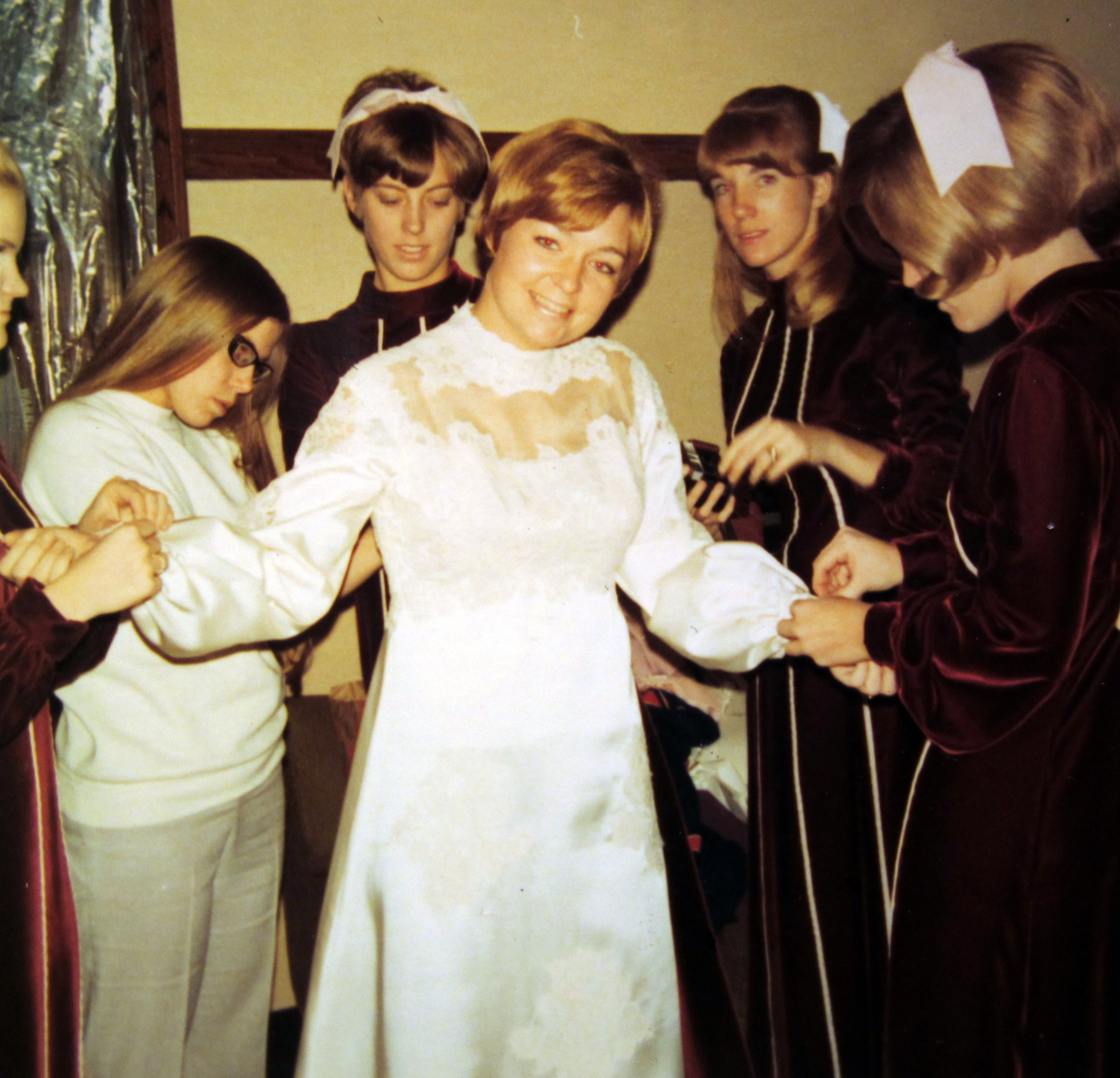 He gave me his ring for Mary, just as the photographer stuck his head into the hall. “Time to assemble everybody in the church sanctuary for group pictures.”