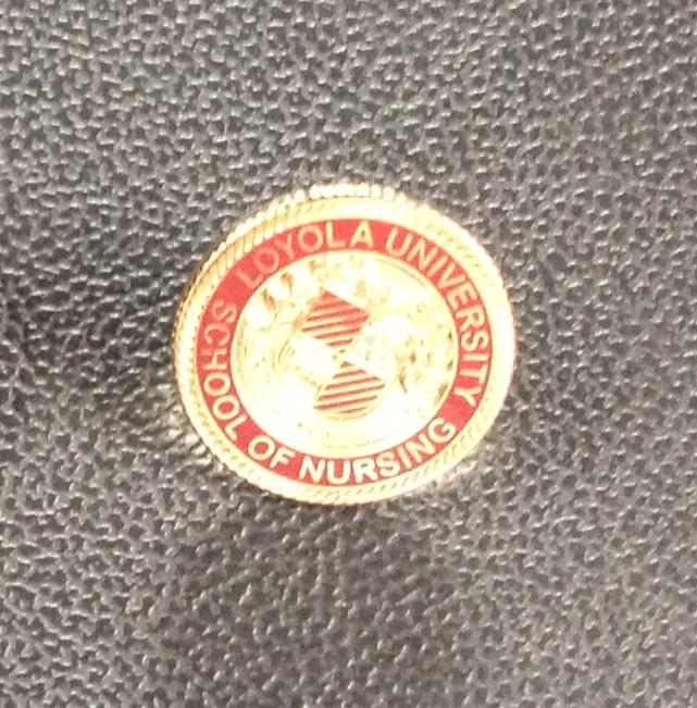 One other kind of “pinning” is accompanied by a formal ceremony in a crowded room filled with people taking pictures. It’s the official welcoming of a nursing student into the profession, and each one receives a pin representing the college where they were trained.
