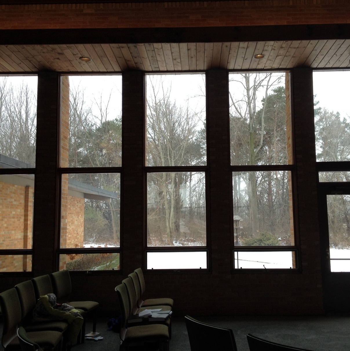 This morning in church, just as the service started, a snowstorm started, too. Because the temperature was above freezing, it didn’t “stick,” but it was very pretty. I noticed something funny, though.