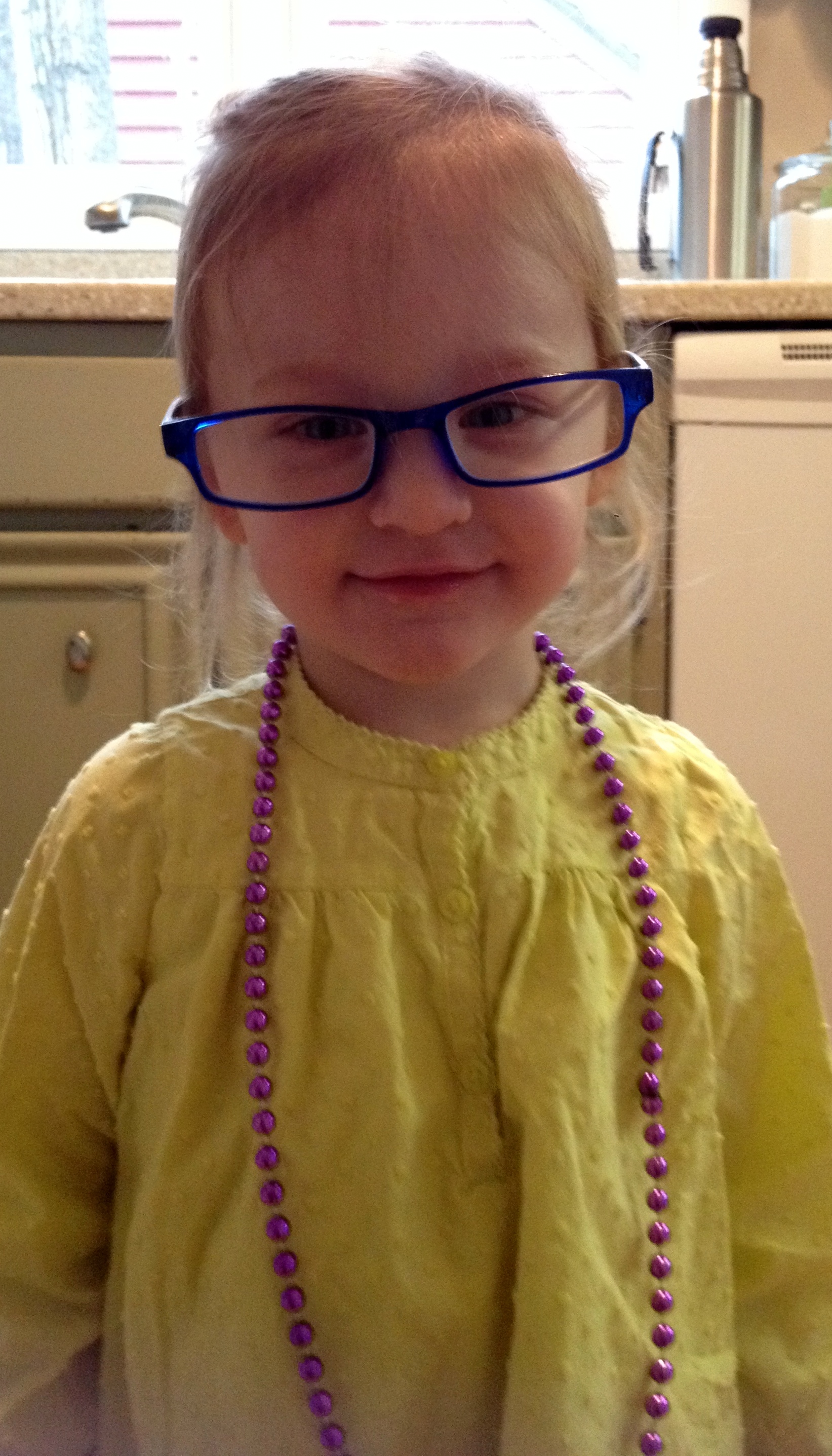 The other day she walked into the kitchen (after rummaging through my desk) with my magnifier glasses on her nose. After staring silently for the longest time, she finally just said, “Eyes.”