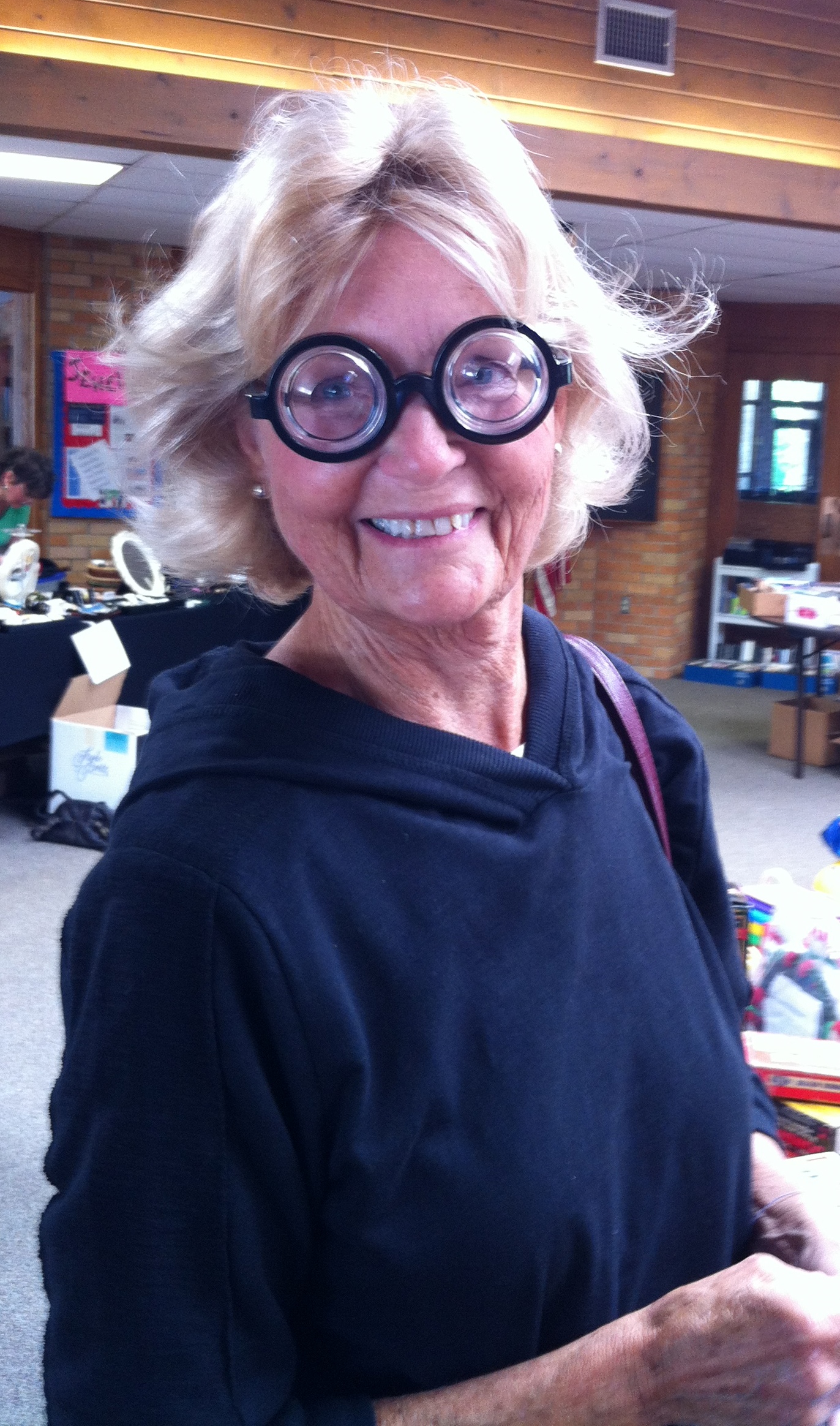 Not long ago I had a similar experience but with a non-visionary response. I found a pair of extreme magnifiers at a rummage sale and got a good laugh trying them on. But unlike Emerald’s desire to experience something new, I couldn’t wait to get them off. She pushed through positively; I gave up.
